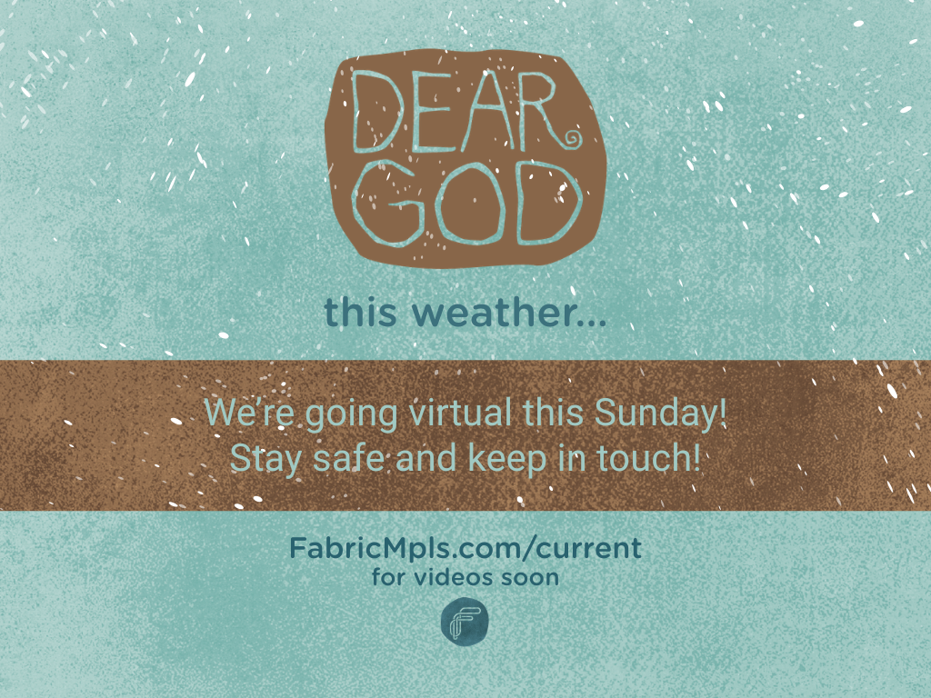 We’re going virtual this Sunday! For the message, Fabric staff will record and release a video version you can watch from the couch. Find it on our YouTube Channel.